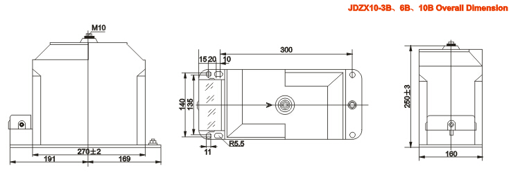 本系列电压互感器为环氧树脂绝缘全封闭结构,铁心与绕组浇注成一体,体积小,重量轻,二次引线端用出线盒罩住,并有三个不同方向的馈线出口。