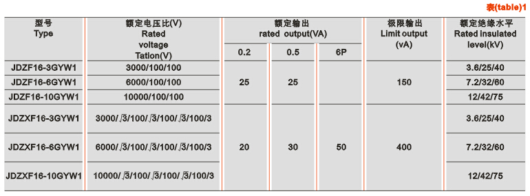 JDZ(X)F16-3、6、10GYW1型电压互感器为单相环氧树脂浇注产品,适用于额定频率50HZ或60HZ、额定电压3KV、6KV、10KV及以下的电力系统中,作电能计量、电压监测和继电保护用。本产品符合IEC186及GB1207-1997《电压互感器》标准。