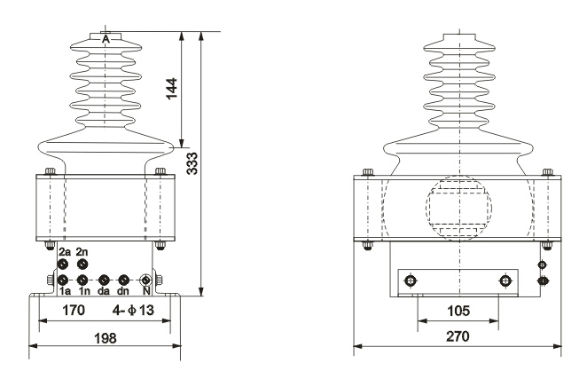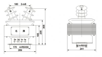本系列电压互感器为半封闭式结构,半封闭铁心外露由底座支撑