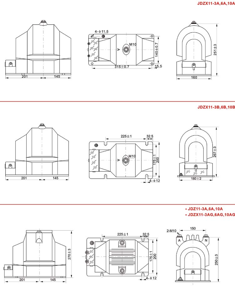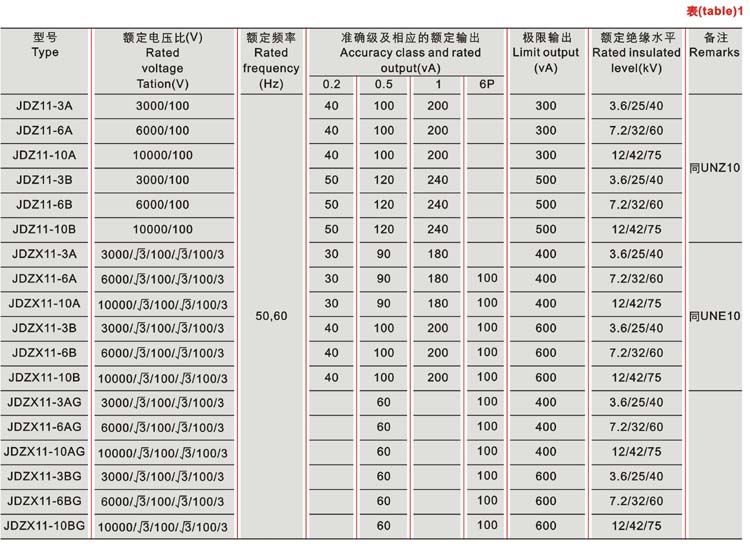 5.该系列产品包括JDZ11-3A、6A、10A;JDZ11-3B、6B、10B;JDZX11-3AG、6AG、10AG;JDZX11-3BG、JDZX11-6BG、JDZX11-10BG;JDZX11-3A、JDZX11-6A、JDZX11-10A;JDZX11-3B、JDZX11-6B、JDZX11-10B六种电压互感器