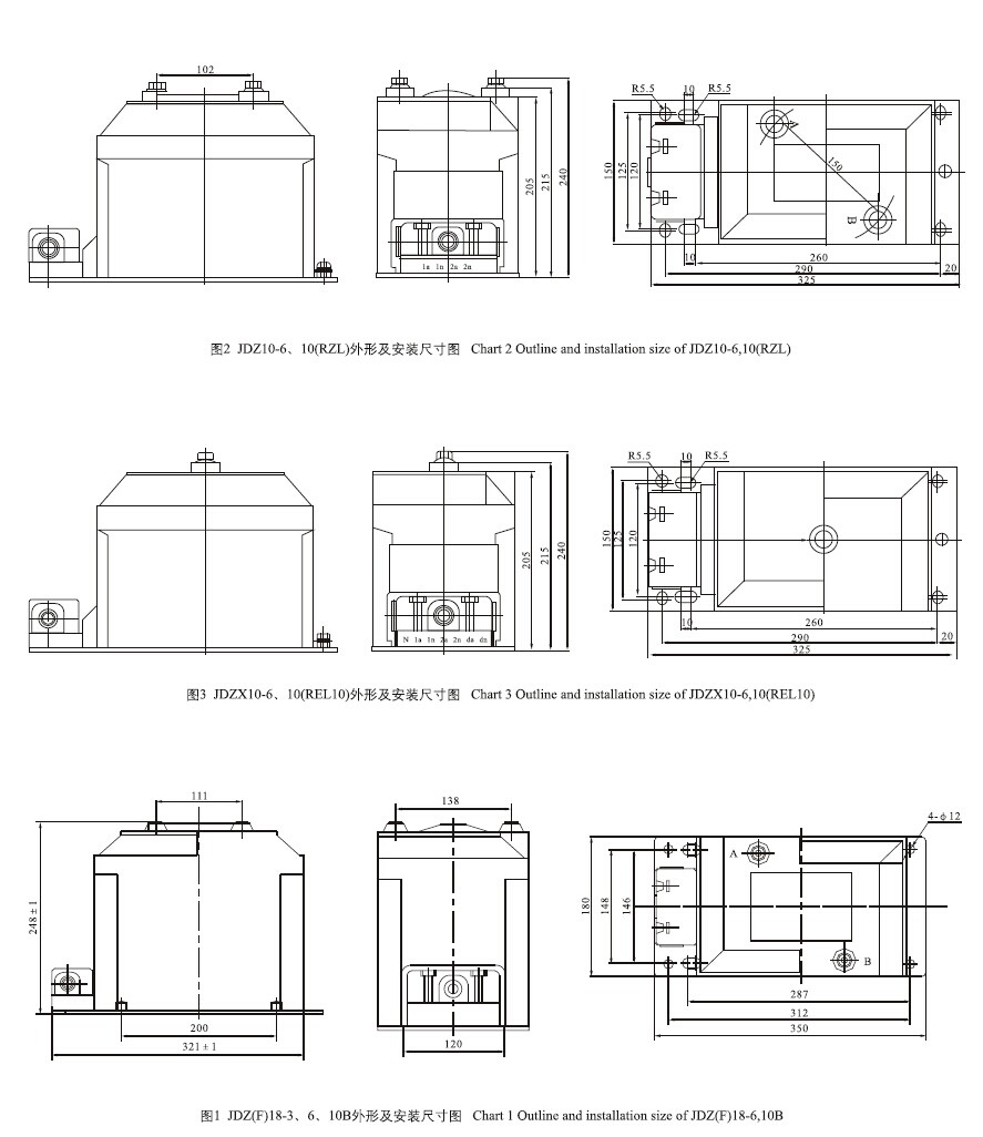 JDZ(X)(F)18-3、6、10;JDZ(X)(F)10-3、6、10等同于REL10 RZL10系列电压互感器