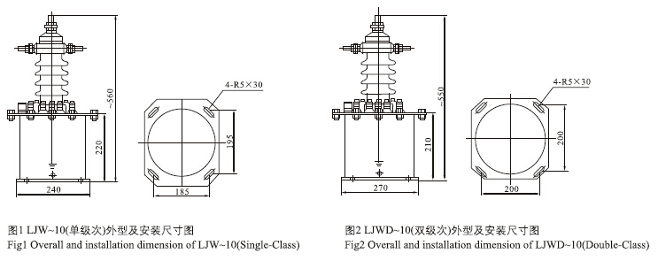 LJW、LJWD-10、35电流互感器外形及安装尺寸图