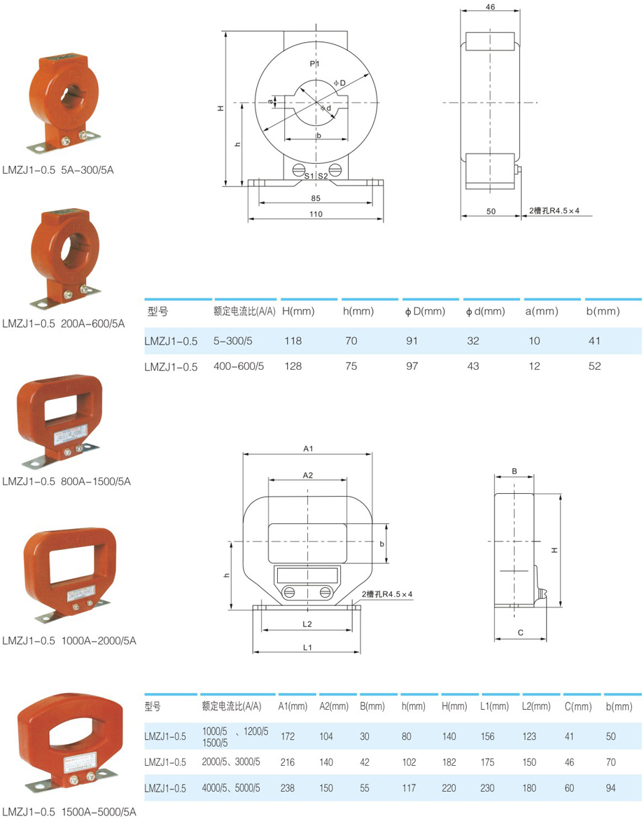 LMZ1-0.5电流互感器 为穿心母线型电流互感器,供额定频率为50HZ,电压为0.5KV及以下的交流线路中测量电流、电能及继电保护之用。