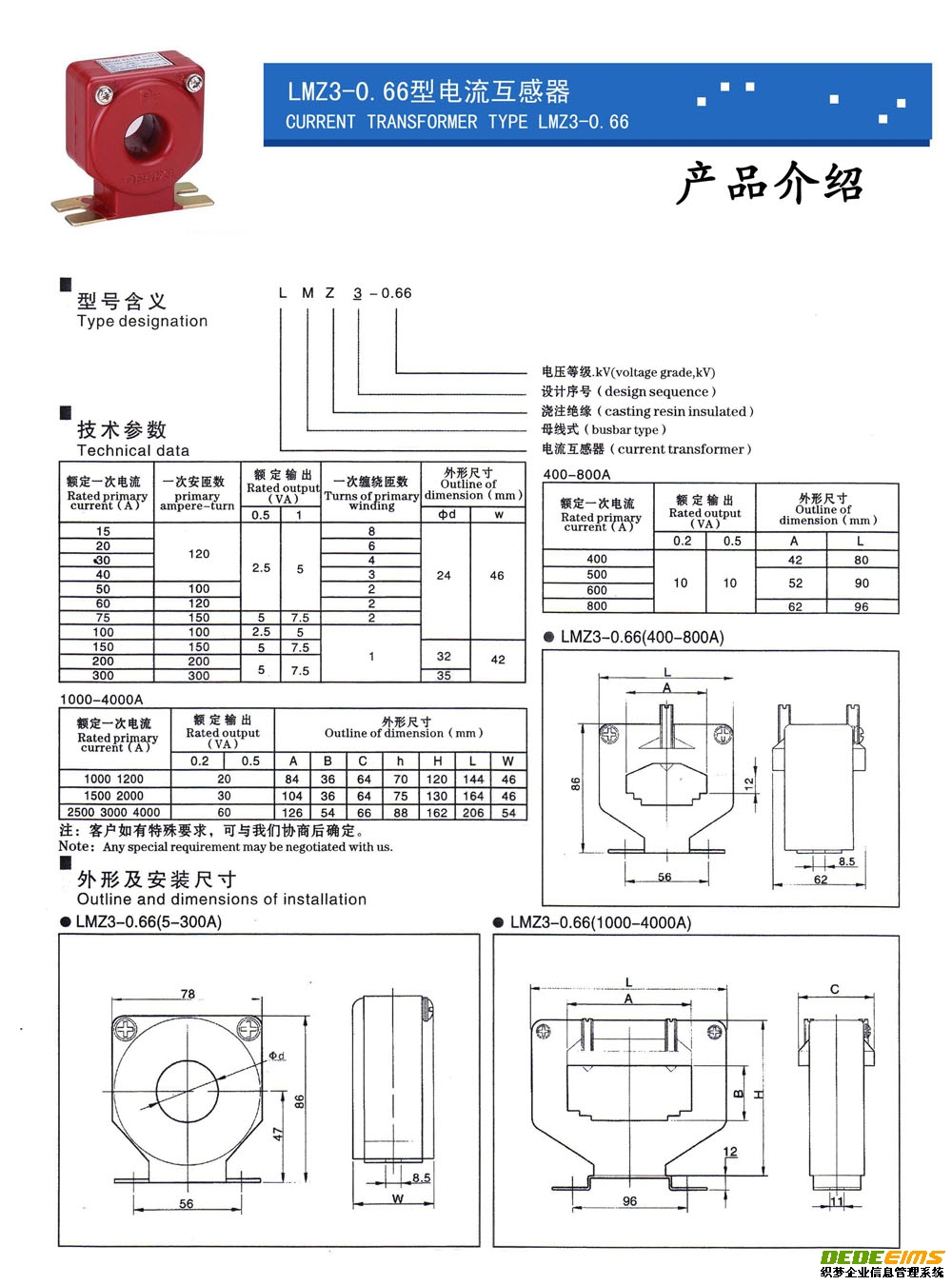 LMZ3-0.66、LMZ3D-0.66、LMZ2-0.66电流互感器该种电流互感器用于户内,供额定频率为50HZ,电压为0.66KV及以下的交流线路中 测量电流、电能及继电保护之用。