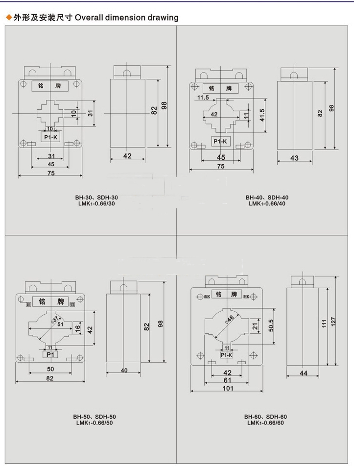 BH-0.66电流互感器为户内型,塑料外壳,全封闭产品.适用于额定频率50HZ或60HZ、额定电压为0.66KV及以下的电力系统中作电能计量、电流监测和保护用。产品符合IEC60044-1;2003及GB1208-2006,<电流互感器>标准.