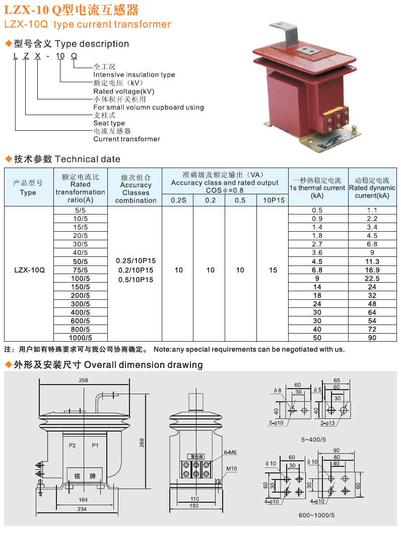 1 LZX8-10Q额定绝缘水平:12/42/75 kV;