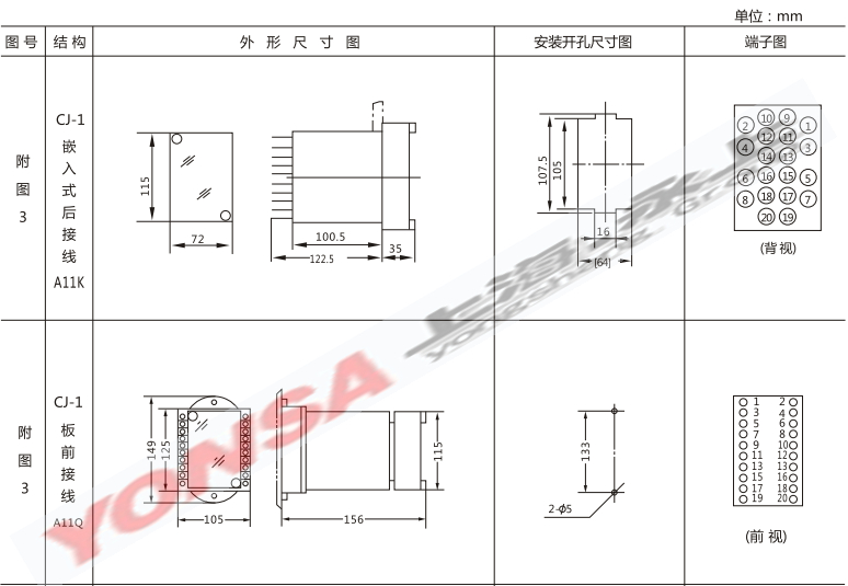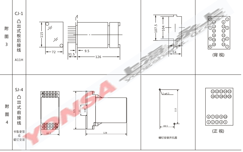 内部及外引接线图(正视图)